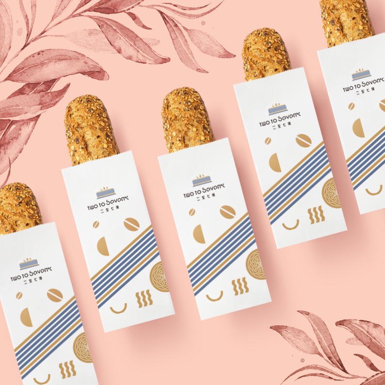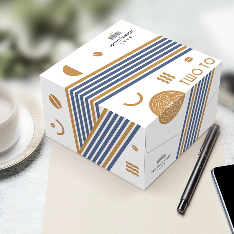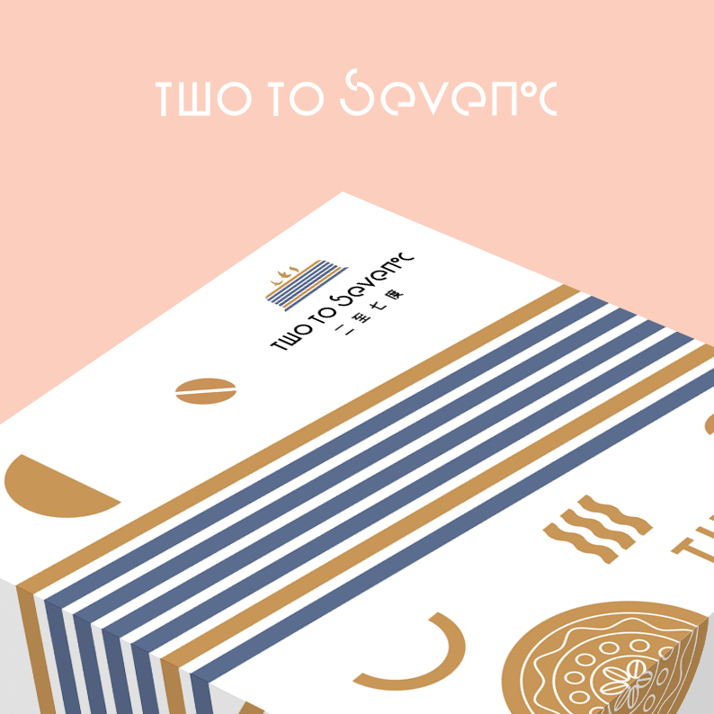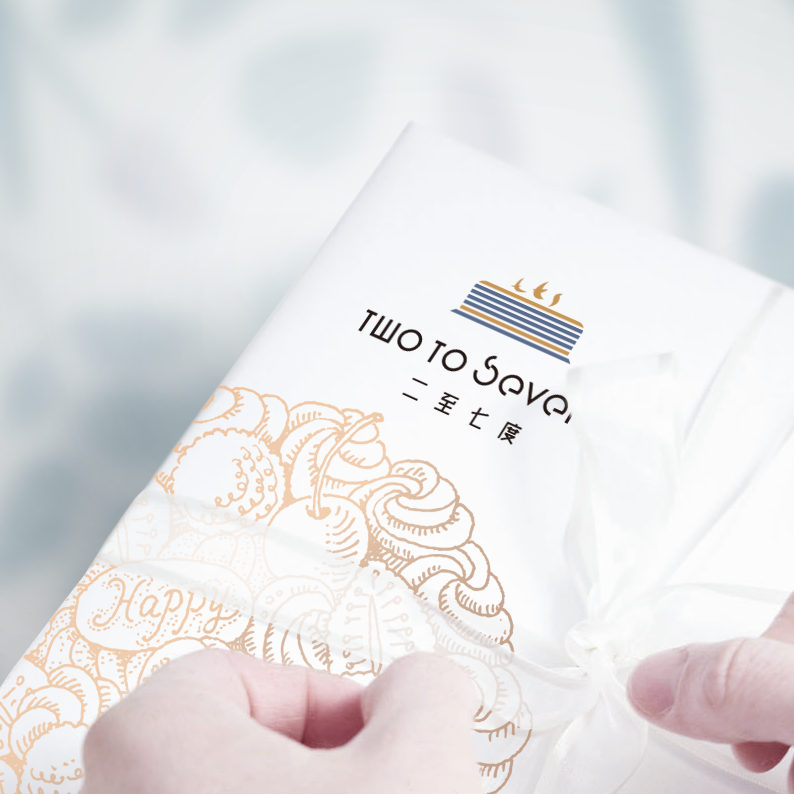 二至七度TWO TO SEVEN℃品牌標志設計以抽象的線條構成蛋糕形態(tài),體現行業(yè)之屬性。右下至上七根線條,如同溫度計的刻度,第二條與第七條為金色,是對蛋糕行業(yè)二至七度黃金溫度的視覺呈現。上方品牌首字母TTS變形為搖曳的燭火造型,同時字母TT又是一對自由飛翔的小鳥,寓意美好浪漫自由的生活。散發(fā)現代視覺設計美感,彰顯獨有的品牌氣質。