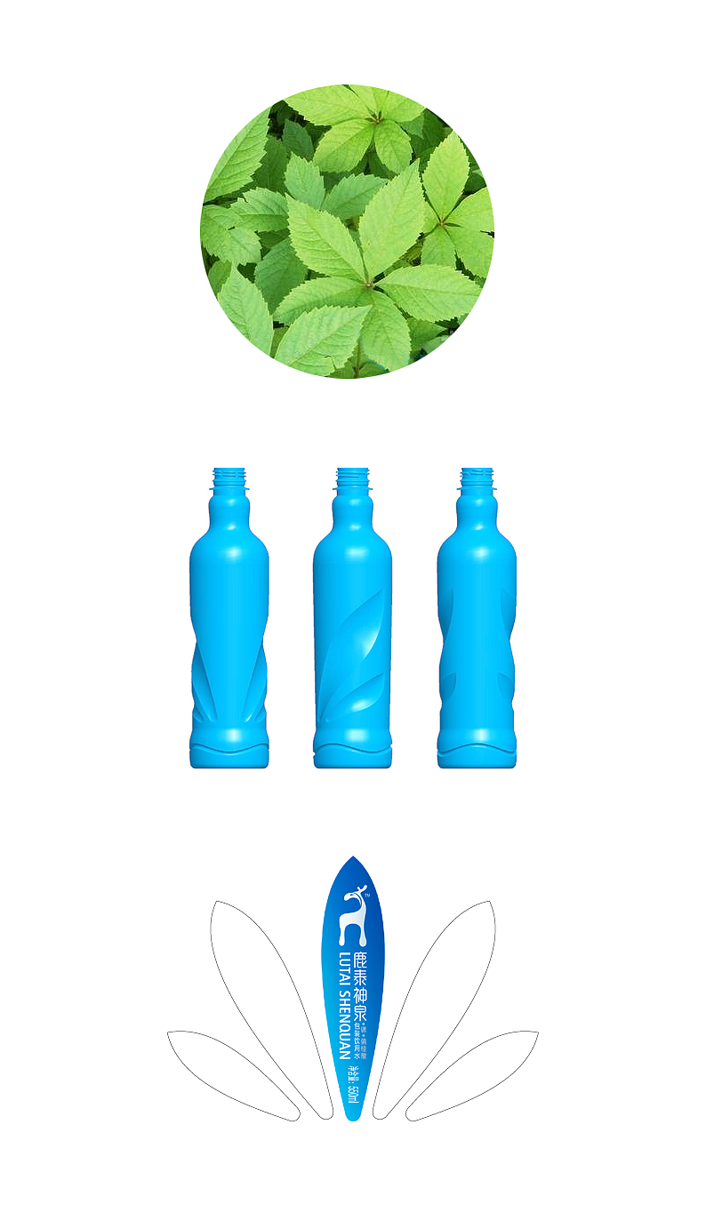 鹿泰神泉的包裝及瓶形的創(chuàng)意設計,源于對自然的理解,以五葉草為創(chuàng)意點,五葉草環(huán)抱瓶身,浸潤綠色純凈之氣息,亭亭玉立、端莊典雅。