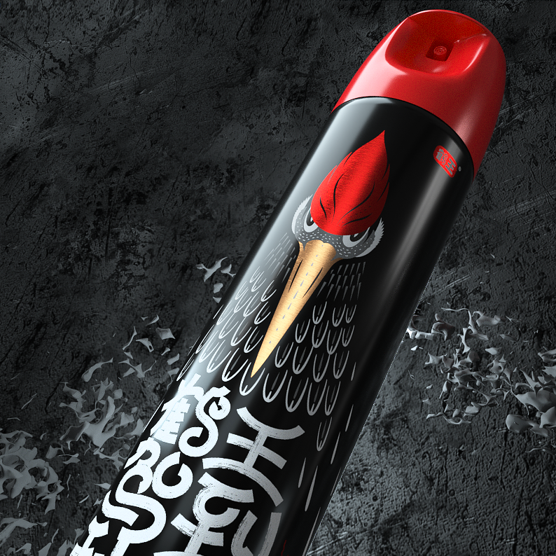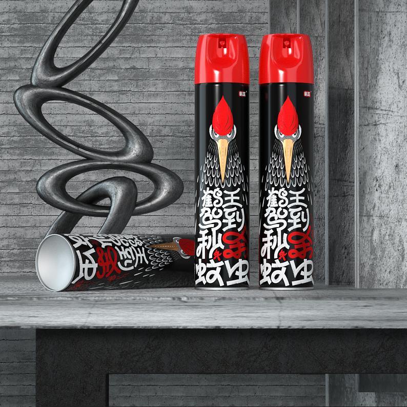 包裝創(chuàng)意設(shè)計(jì),字體設(shè)計(jì)涂鴉風(fēng)格,黑白紅色彩對(duì)比視覺(jué)酷炫,顏值爆表,在殺蟲(chóng)氣霧劑包裝中脫穎而出。