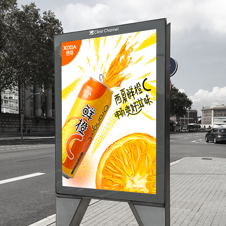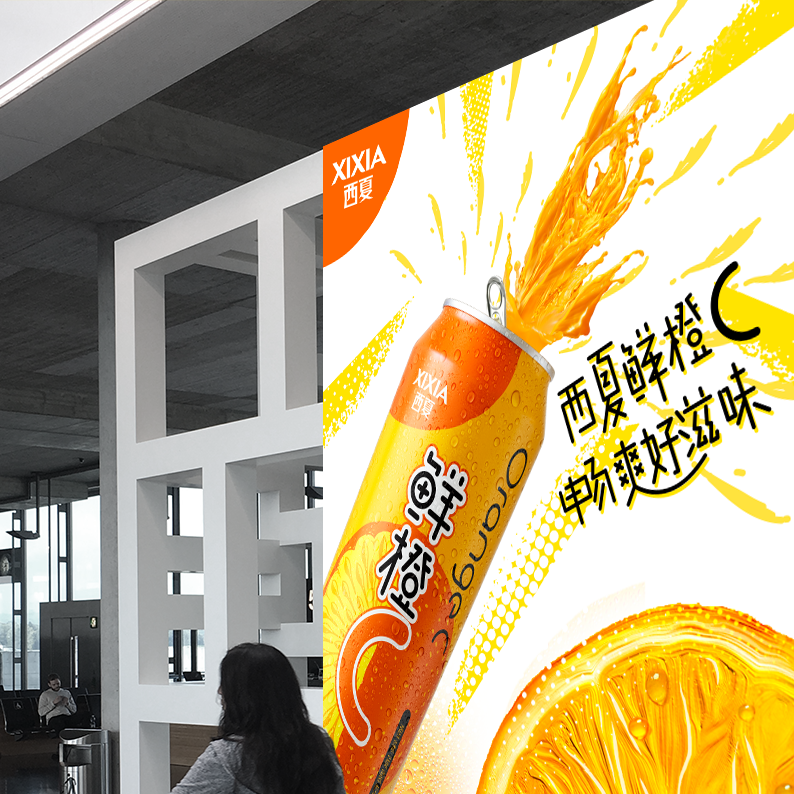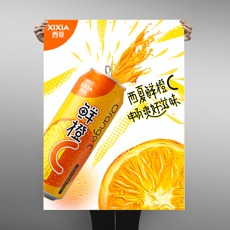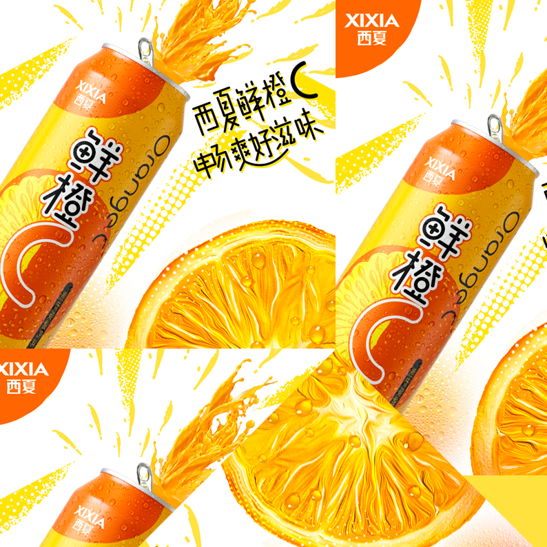 Xixia beer is a sub brand of Carlsberg beer. There are many fruit beer products of various brands on the market, most of which are traditional design styles. Through the analysis of target consumer groups and product positioning and characteristics, We decided to use hand-painted form to express orange flavor drinks. The font design of orange C is novel and modern, the packaging design is simple and fashionable, and the overall color matching is distinctive.