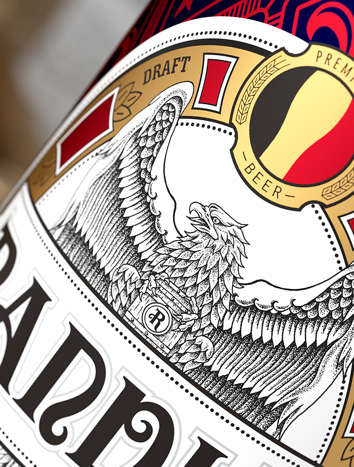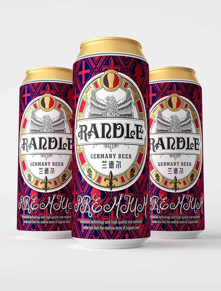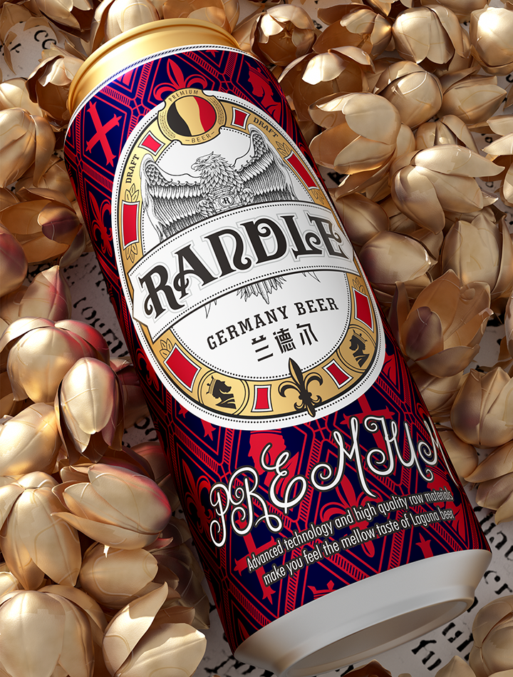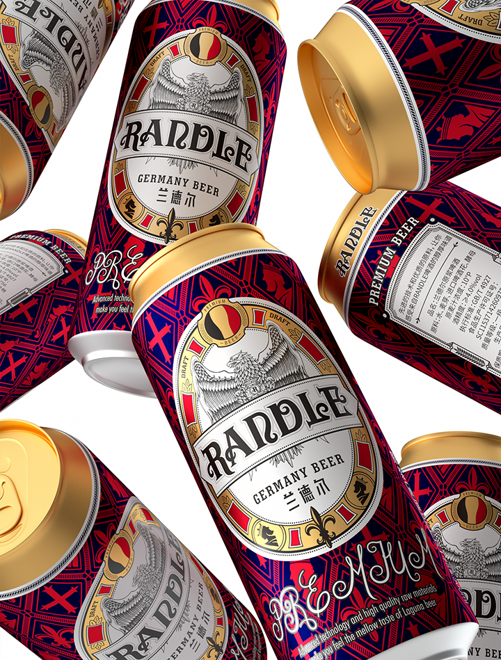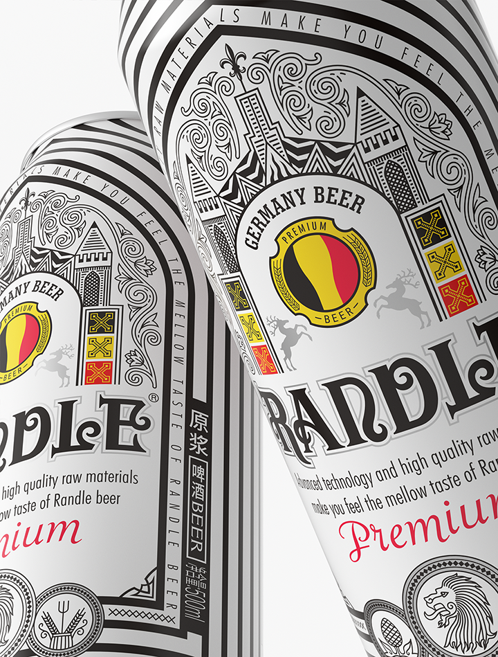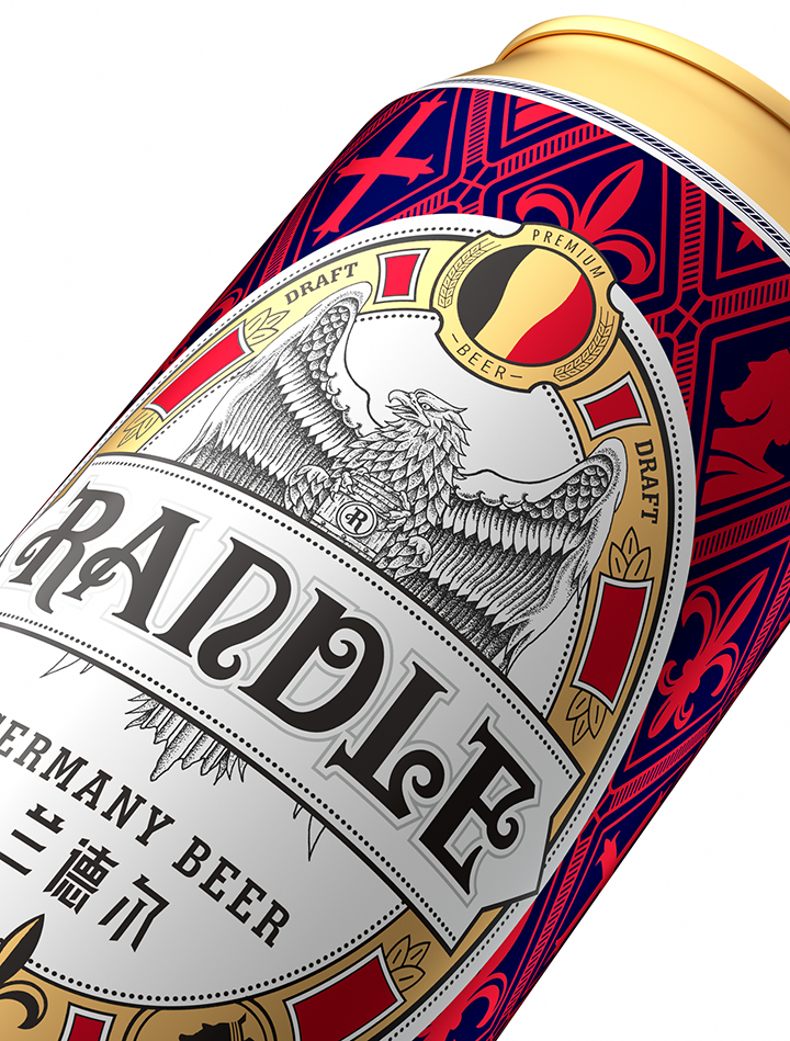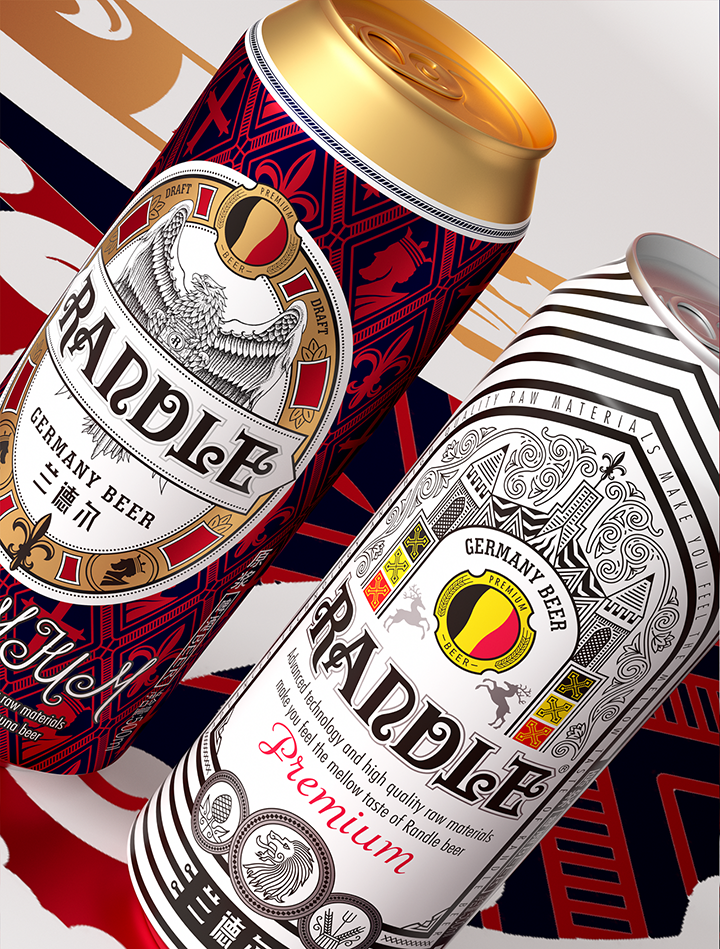 Bofly design redefines the modern fashion design style of German beer for Randle brand, and interprets the brand with new visual language. Hand painted black eagle image represents strength and courage in German culture. Eagle claws hold beer barrel tightly, and guard brand quality and beer culture inheritance. The combination of modern visual expression and retro elements changes the inherent impression of traditional beer and gives us a new brand image.