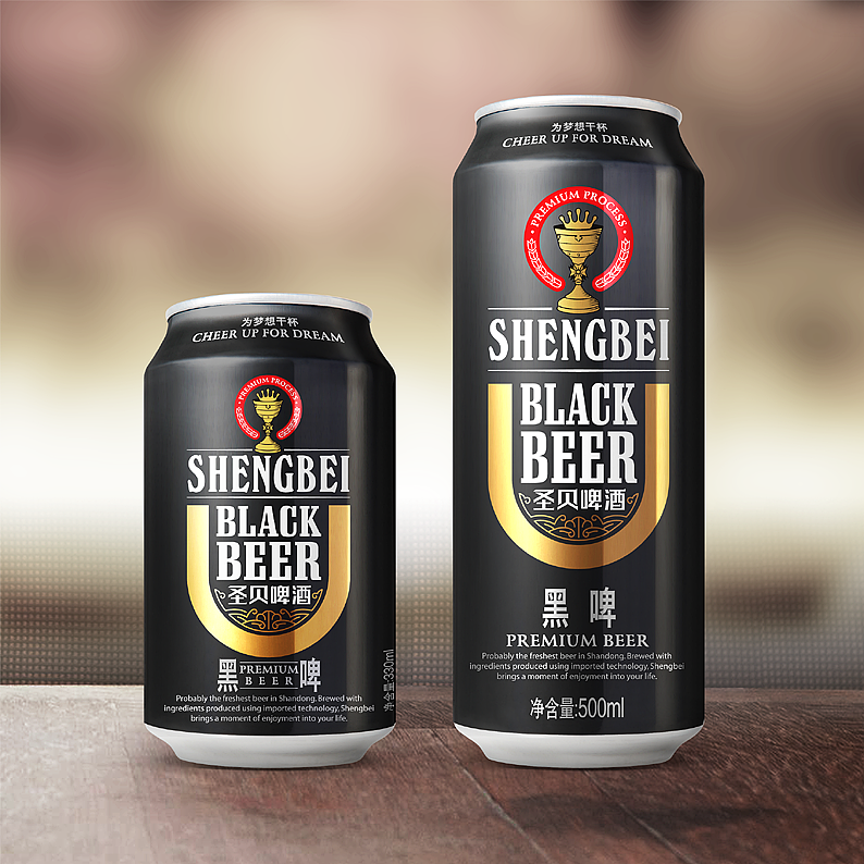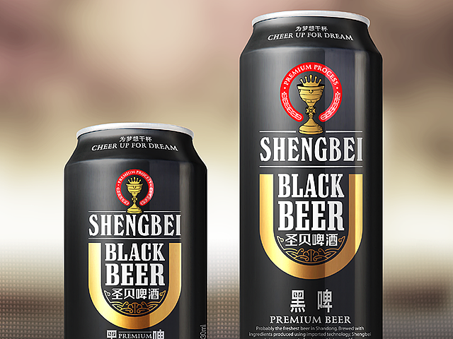 圣貝啤酒定位在中高端產(chǎn)品,諧音圣杯,設(shè)計以此創(chuàng)意展開。